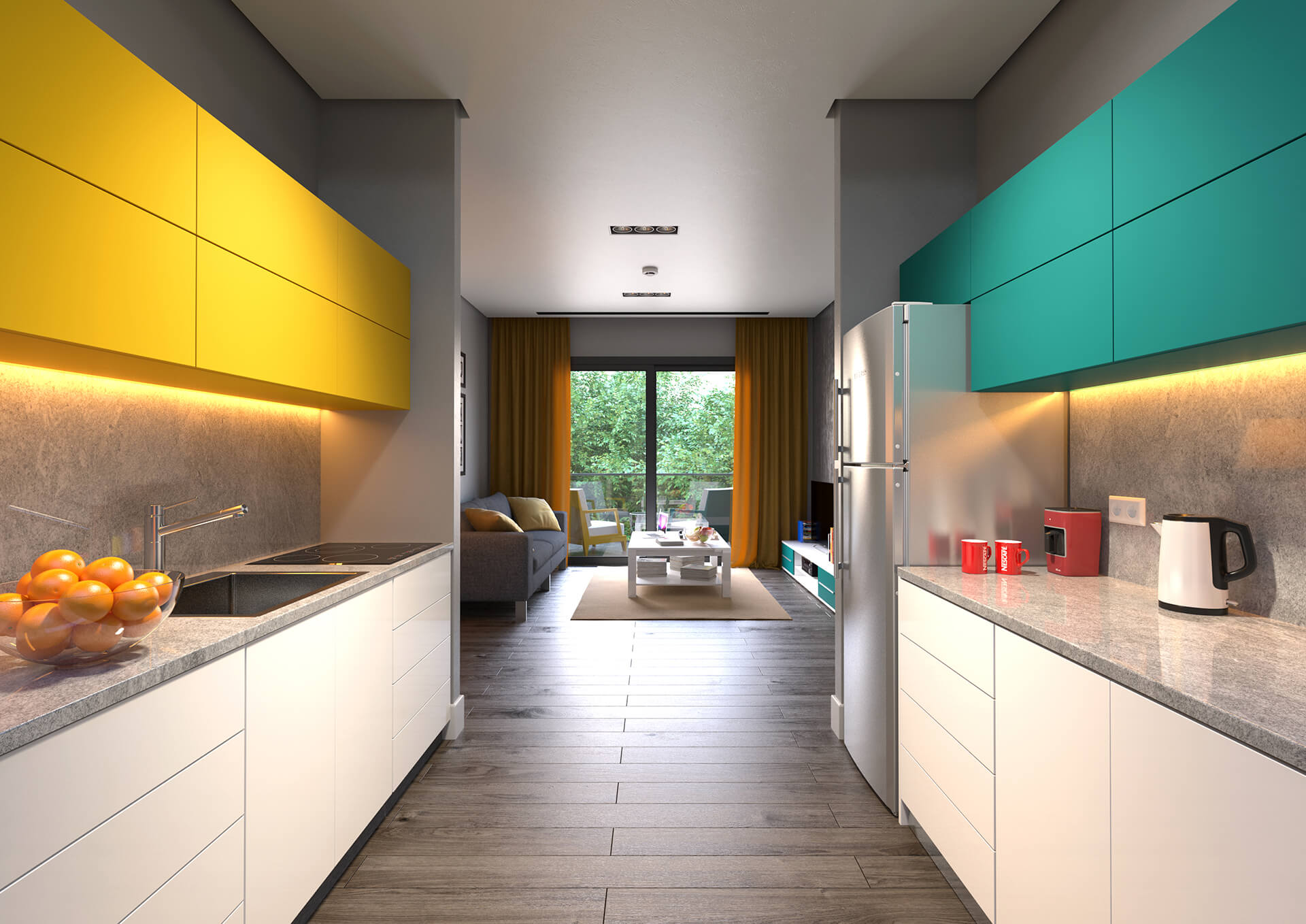 Houses are furnished with modern, stylish furniture
